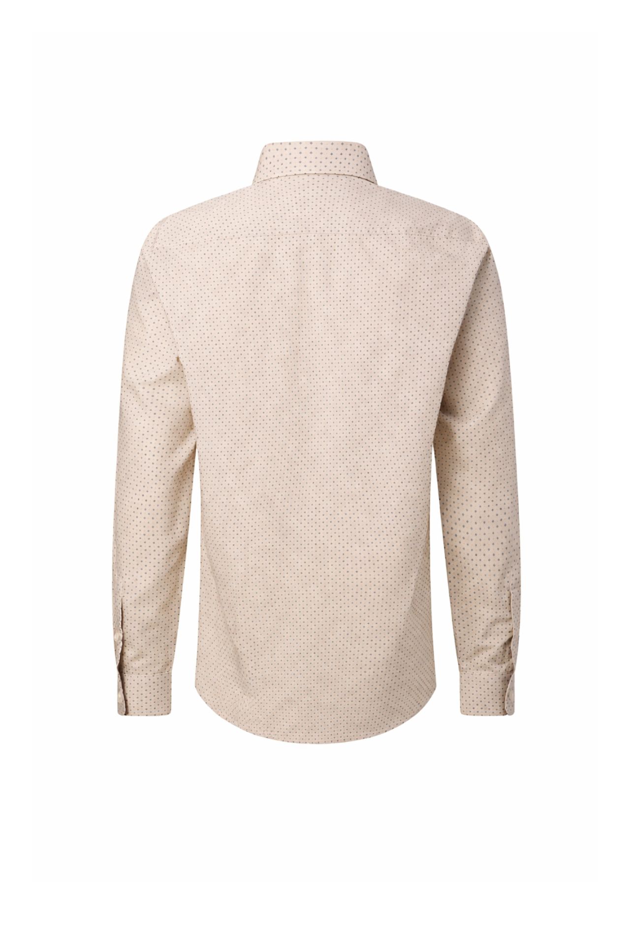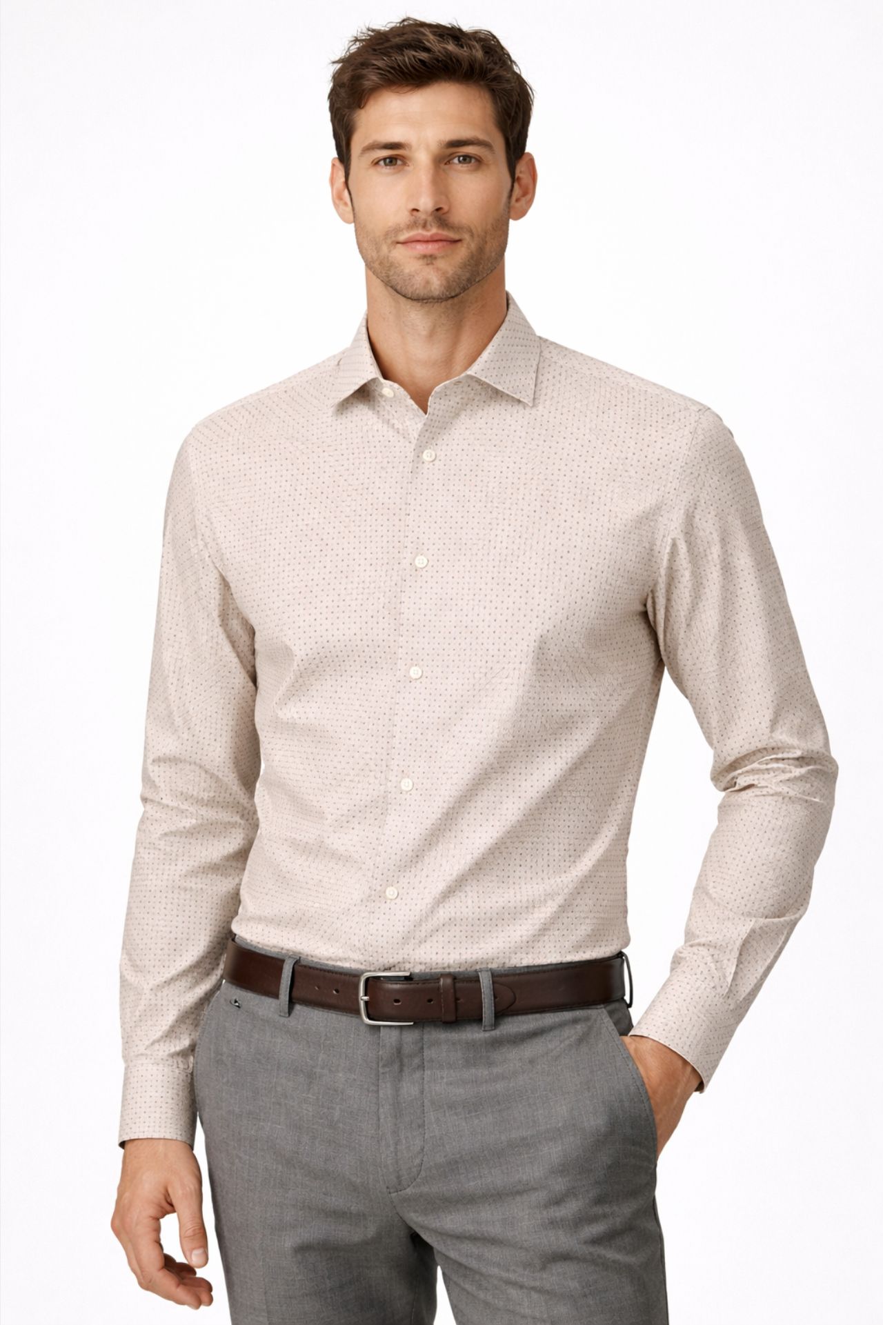 Elegancka koszula męska wykonana w 100% z wysokiej jakości bawełny, zapewnia doskonałą przewiewność, komfort noszenia i naturalną miękkość przez cały dzień. Subtelny, drobny wzór na jasnym tle nadaje koszuli nowoczesny, a jednocześnie ponadczasowy charakter, idealny zarówno do stylizacji biznesowych, jak i smart casual. Bawełniana koszula męska premium to doskonały wybór dla mężczyzn ceniących wygodę, styl i wysoką jakość wykonania.