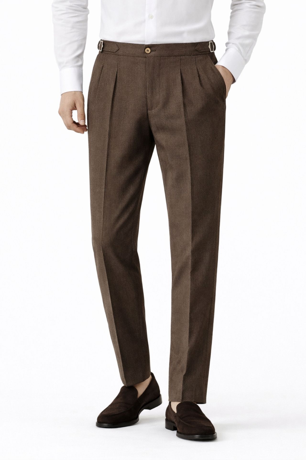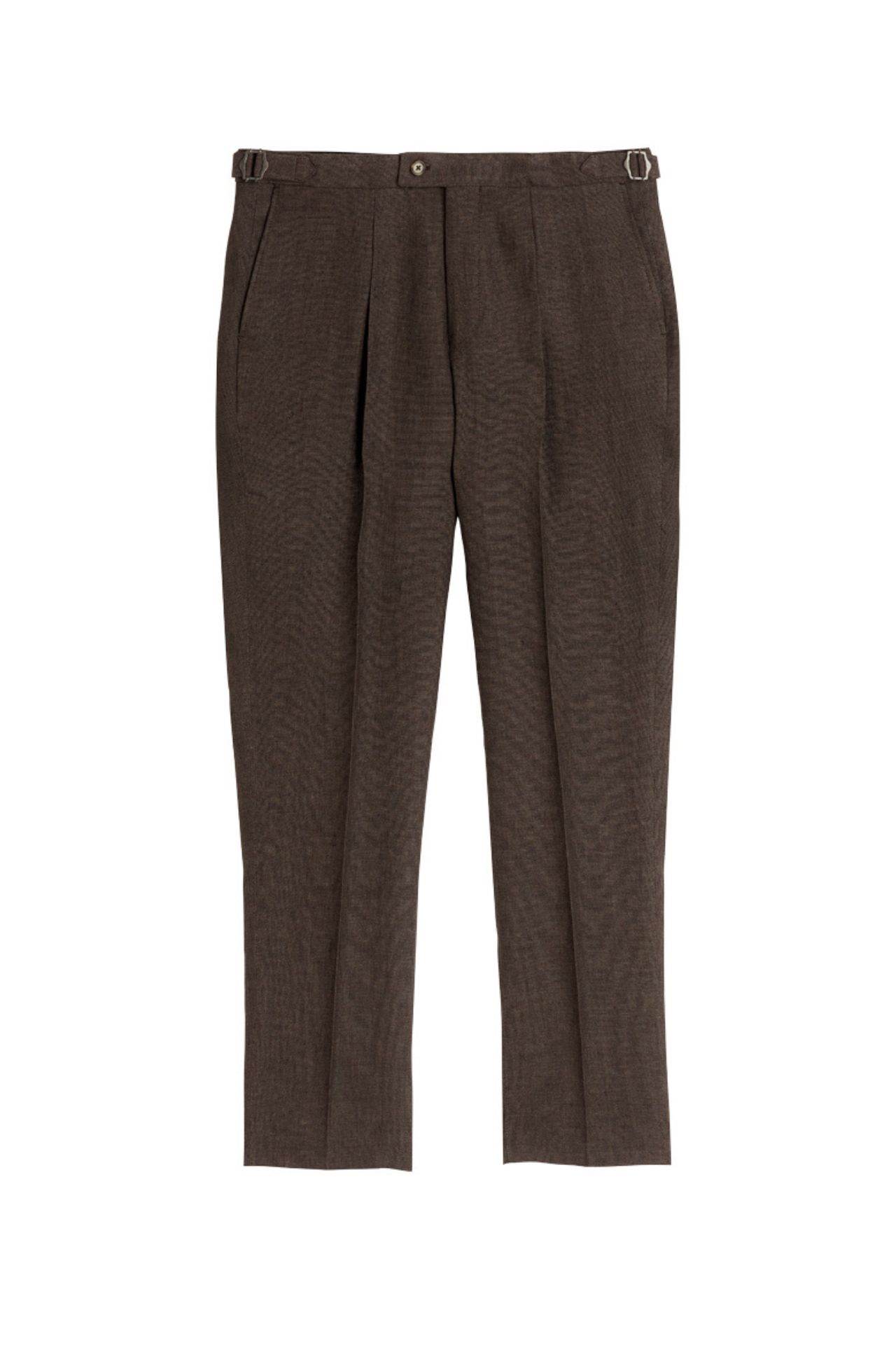 Eleganckie spodnie męskie, wykonane w 100% z wysokogatunkowego lnu, wyróżniające się subtelnym, strukturalnym wzorem, który nadaje im wyjątkowej głębi i charakteru. Naturalna, oddychająca tkanina zapewnia doskonałą przewiewność oraz komfort noszenia nawet w ciepłe dni, czyniąc je idealnym wyborem na sezon wiosenno-letni. Model doskonale komponuje się z marynarką o kodzie 024871, tworząc nowoczesny, lekki garnitur premium. To propozycja dla mężczyzn ceniących luksusowe materiały, ponadczasowy styl i najwyższą jakość wykonania.