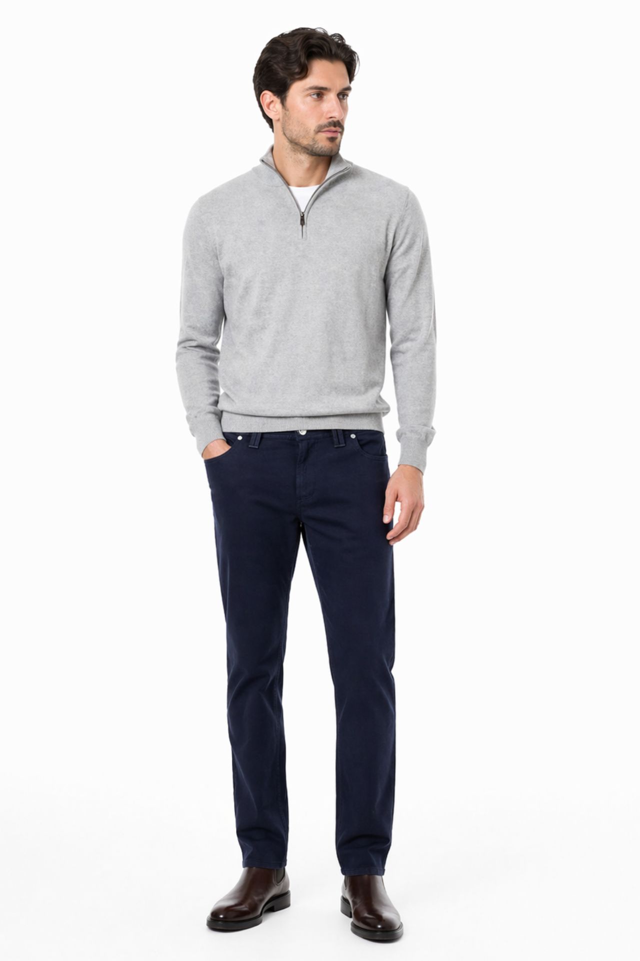 Jeansy o regularnym fasonie to połączenie klasycznego designu i nowoczesnej wygody. Uszyte z wysokogatunkowej mieszanki bawełny, elastomultiestru oraz elastanu, zapewniają elastyczność i komfort noszenia, nie ograniczając swobody ruchów. Ciemnoniebieski denim nadaje im elegancki, uniwersalny charakter, a prosta nogawka i tradycyjny krój sprawiają, że model świetnie wpisuje się w ponadczasową męską garderobę. Model wyróżnia się łatwością w pielęgnacji, dzięki czemu na co dzień prezentuje się schludnie bez większego wysiłku. Certyfikat Oeko-Tex® Standard 100 potwierdza, że spodnie zostały stworzone z myślą o jakości i bardziej świadomym podejściu do środowiska. Linia Alberto Premium Superstretch zapewnia wyjątkowy komfort użytkowania, a zastosowanie włókna T400® pomaga utrzymać fason spodni i ich świeży wygląd na dłużej. To wszechstronny model, który z łatwością sprawdzi się w wielu stylizacjach.