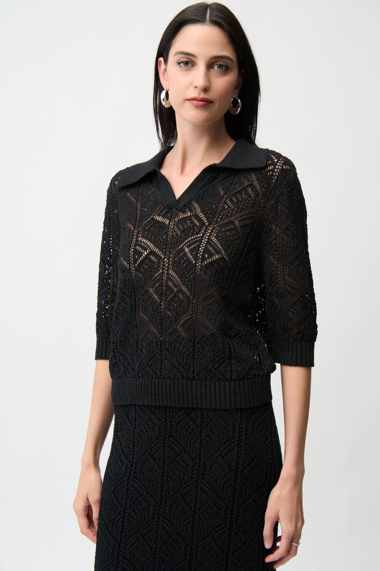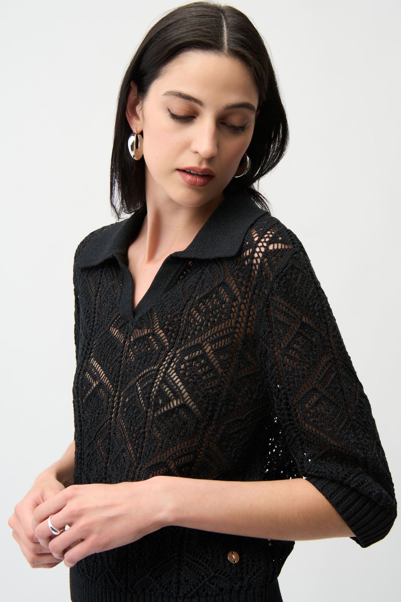 Czarny Ażurowy Sweter Joseph Ribkoff