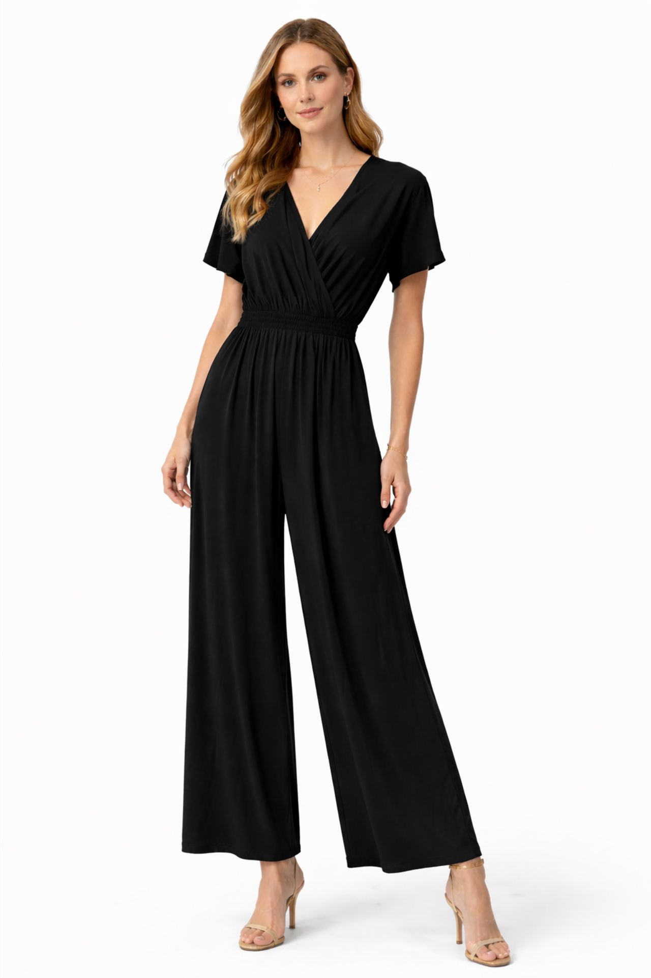 Czarny Kombinezon z Kopertowym Dekoltem Kaos