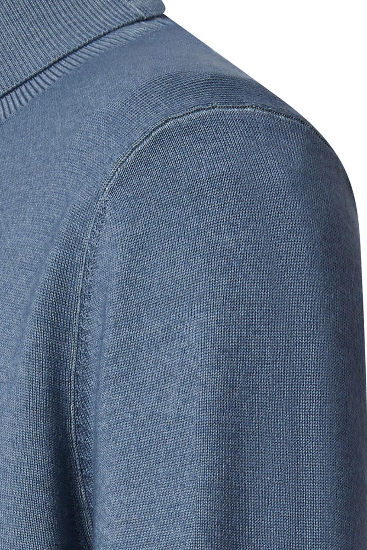 Wykończenie dodatkowe: Golf z dzianinowego ściągacza, na dole z lewej strony naszyta skórzana plakietka z logo