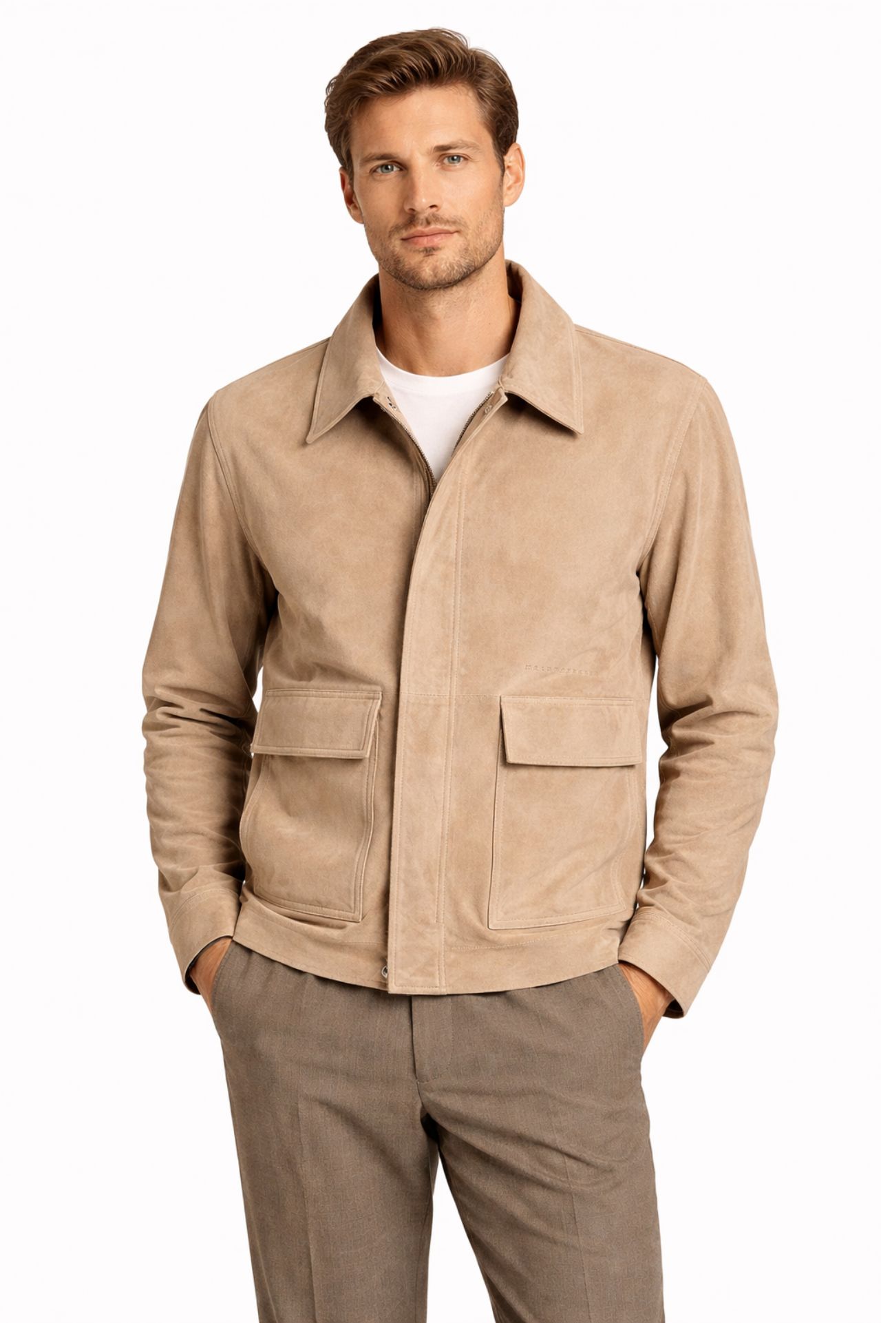 Jasnobrązowa Kurtka ze Skóry Zamszowej Baldessarini