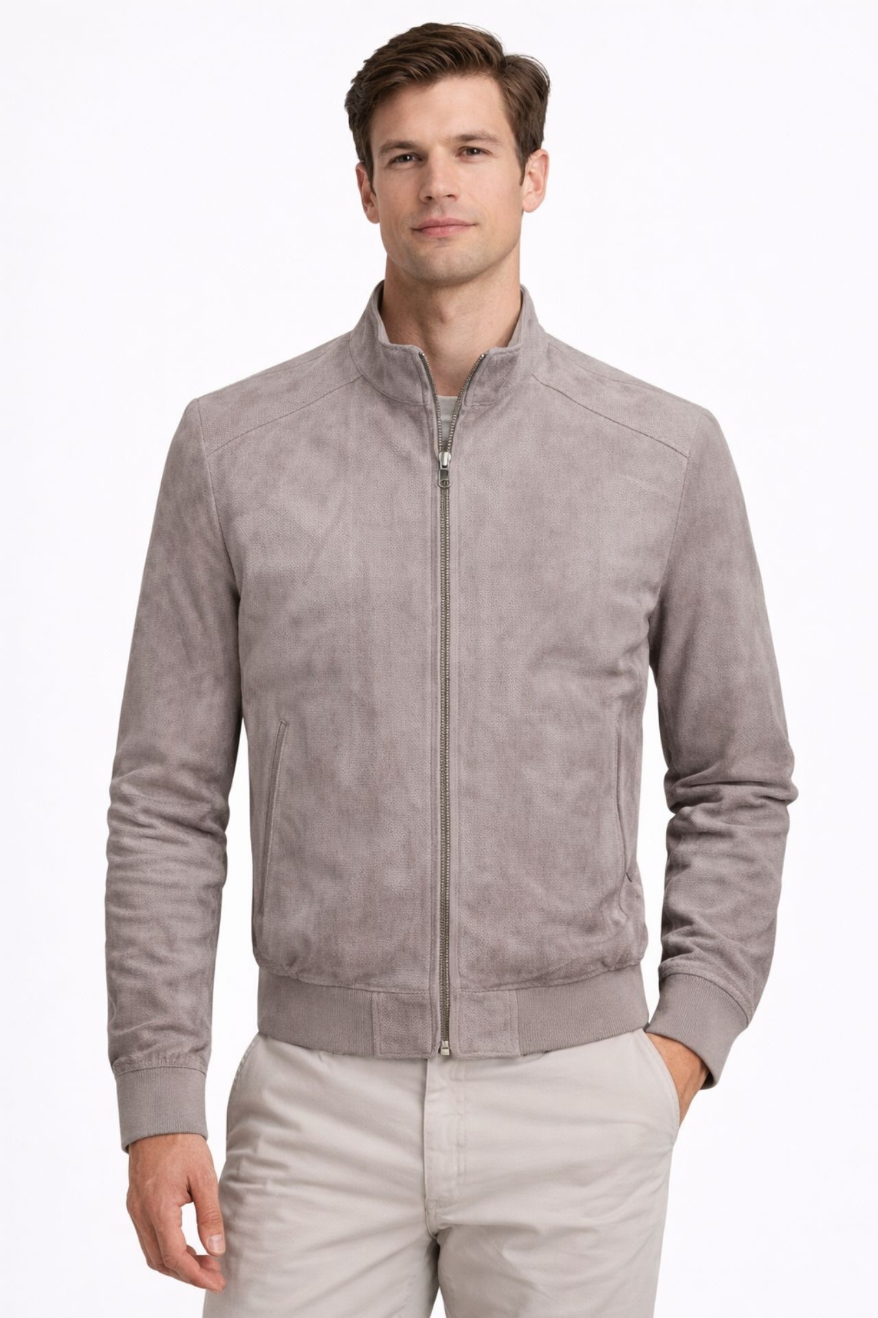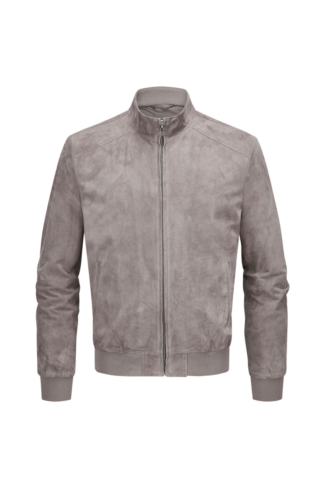 Męska kurtka wykonana z naturalnej skóry koziej o zamszowym wykończeniu to ekskluzywna propozycja odzieży premium. Subtelna perforacja podkreśla lekkość konstrukcji i wspiera cyrkulację powietrza, dzięki czemu model zapewnia komfort użytkowania w sezonie przejściowym. Nowoczesny krój ze stójką, metalowym zamkiem i dopracowanymi ściągaczami nadaje jej elegancki, minimalistyczny charakter, idealny do stylizacji smart casual oraz nowoczesnej mody męskiej.