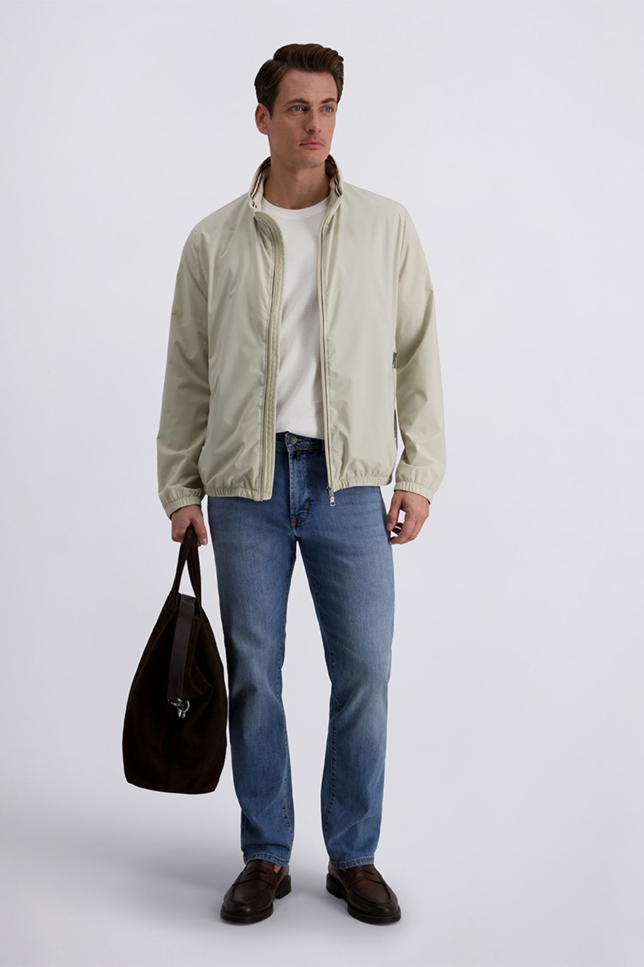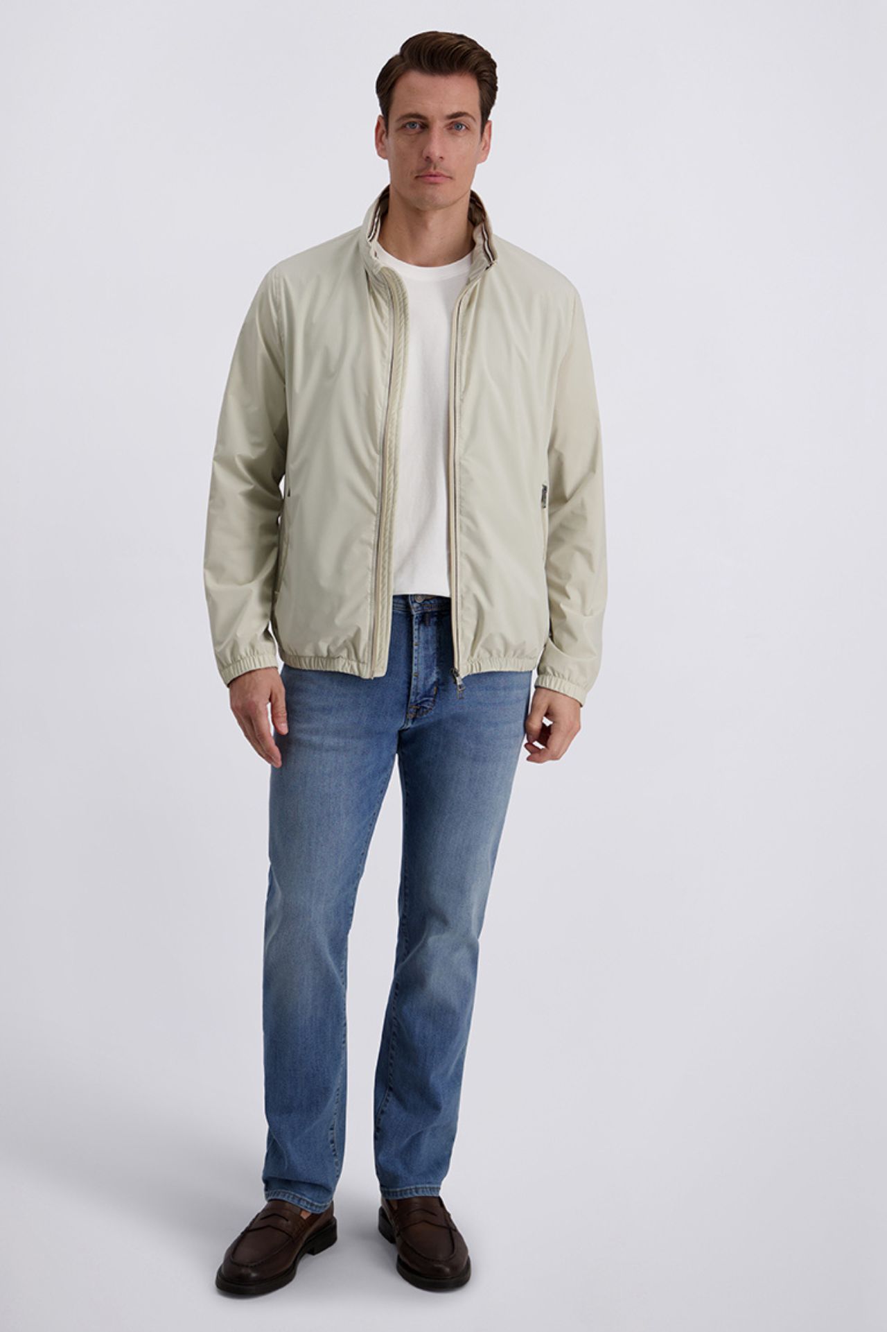 Beżowa kurtka męska o nowoczesnym, minimalistycznym designie łączy elegancki styl z wysoką funkcjonalnością. Wykonana z lekkiego, oddychającego materiału o właściwościach hydrofobowych i wiatroszczelnych, skutecznie chroni przed zmiennymi warunkami pogodowymi, zapewniając jednocześnie komfort noszenia przez cały dzień. Wewnętrzna podszewka z siateczki wspiera cyrkulację powietrza, a ukryty w wysokiej stójce kaptur zwiększa praktyczność kurtki w niespodziewanym deszczu lub wietrze. To idealna kurtka męska premium do codziennych stylizacji miejskich i smart casual, łącząca funkcjonalność, lekkość i ponadczasową estetykę.