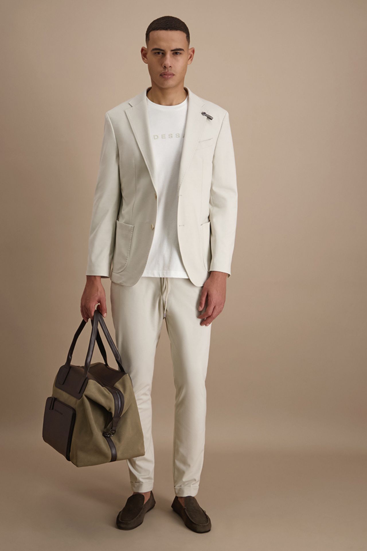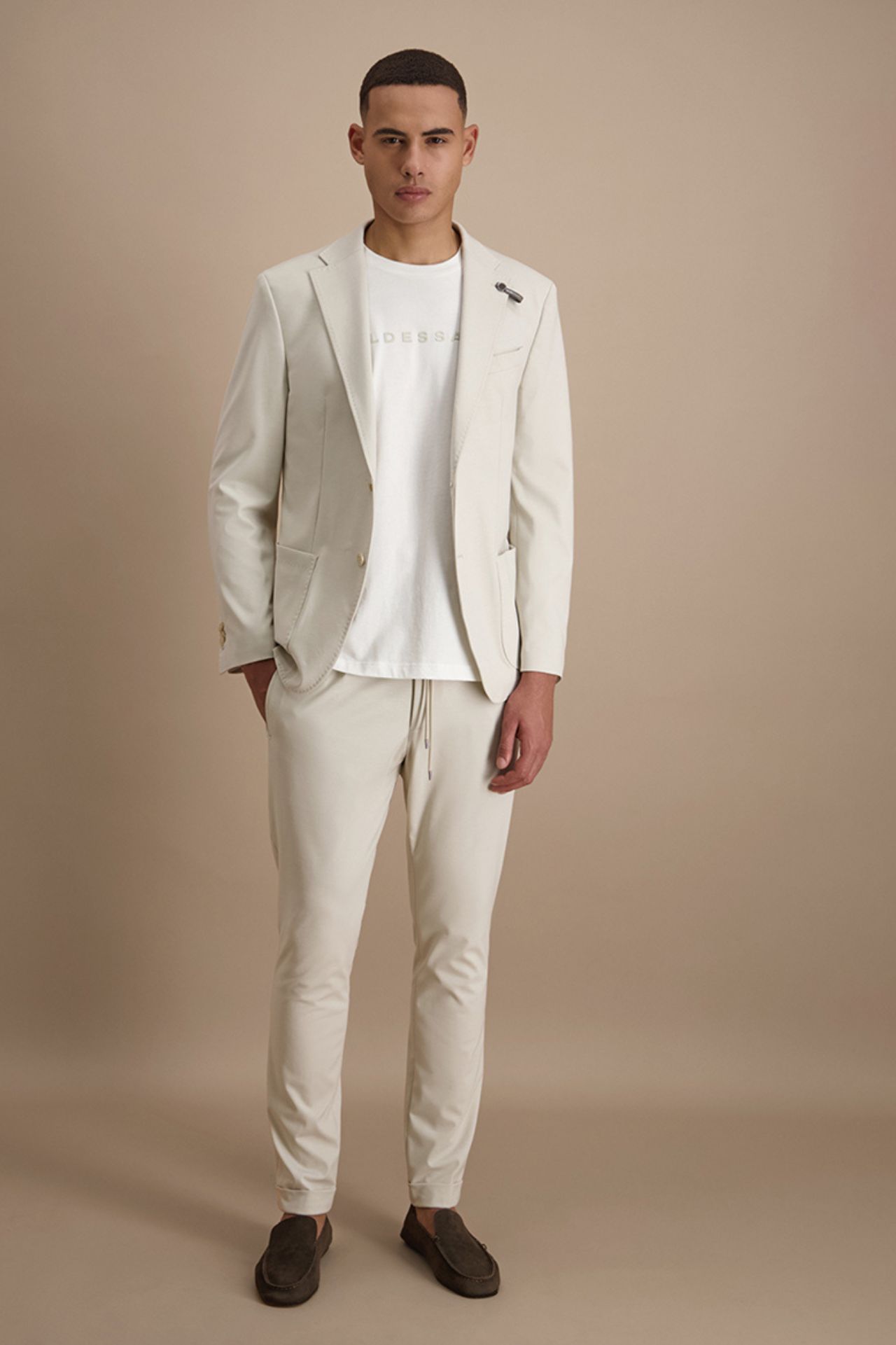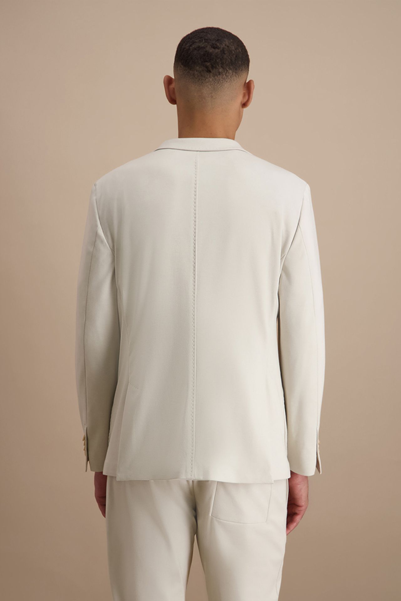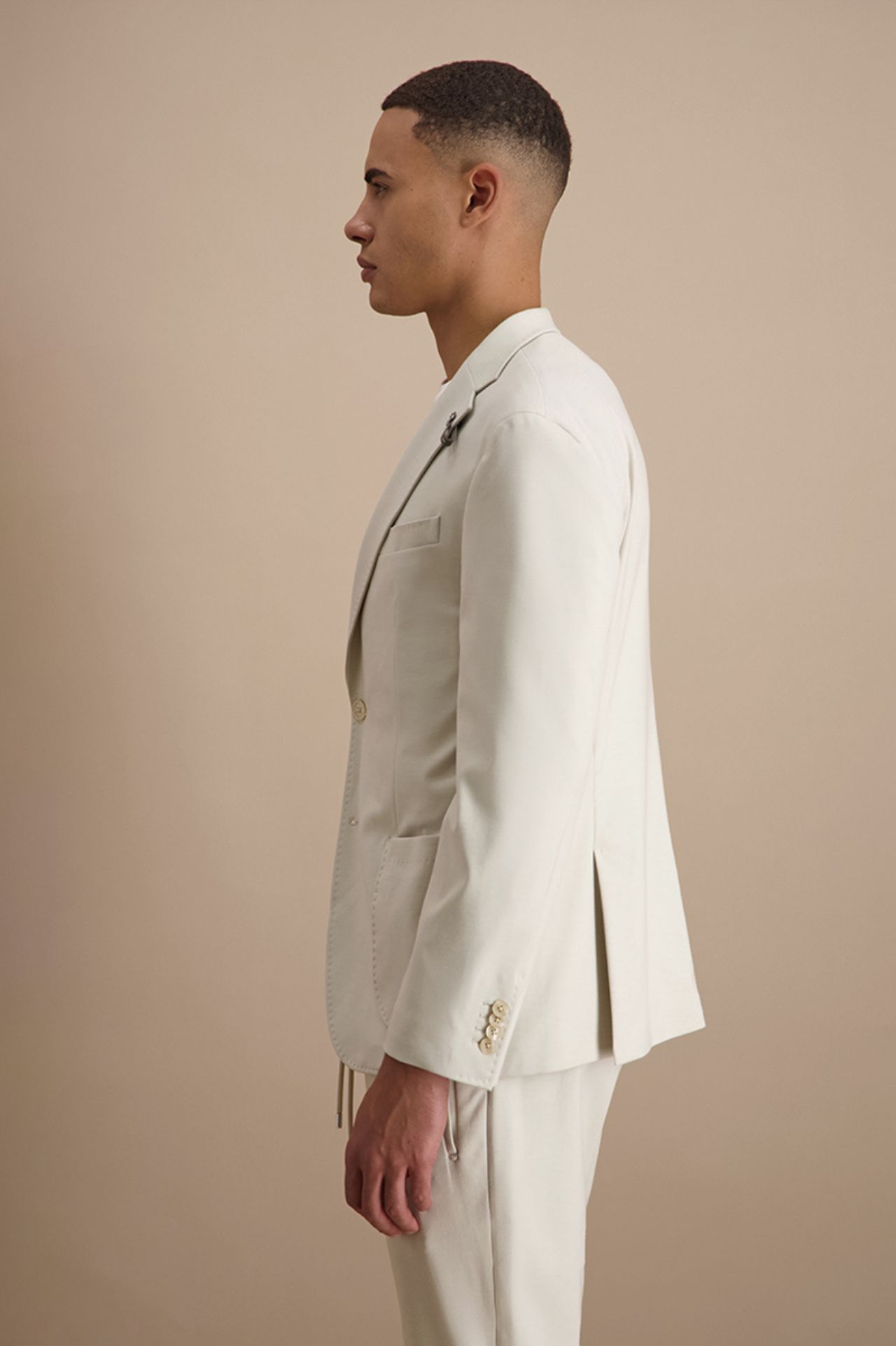Nowoczesna marynarka garniturowa w jasnym, eleganckim odcieniu została wykonana z wysokiej jakości mieszanki wiskozy w elastycznej strukturze jerseyu, co zapewnia wyjątkową swobodę ruchów i komfort noszenia przez cały dzień. Lekka konstrukcja oraz subtelne usztywnienie ramion nadają sylwetce wyrafinowaną linię, zachowując przy tym naturalny charakter i miękkość tkaniny. Minimalistyczne wykończenie i dopracowane detale podkreślają jej współczesny styl premium. Model tworzy spójny komplet garniturowy ze spodniami o kodzie produktu 024567, stanowiąc doskonałą propozycję na formalne i półformalne okazje.