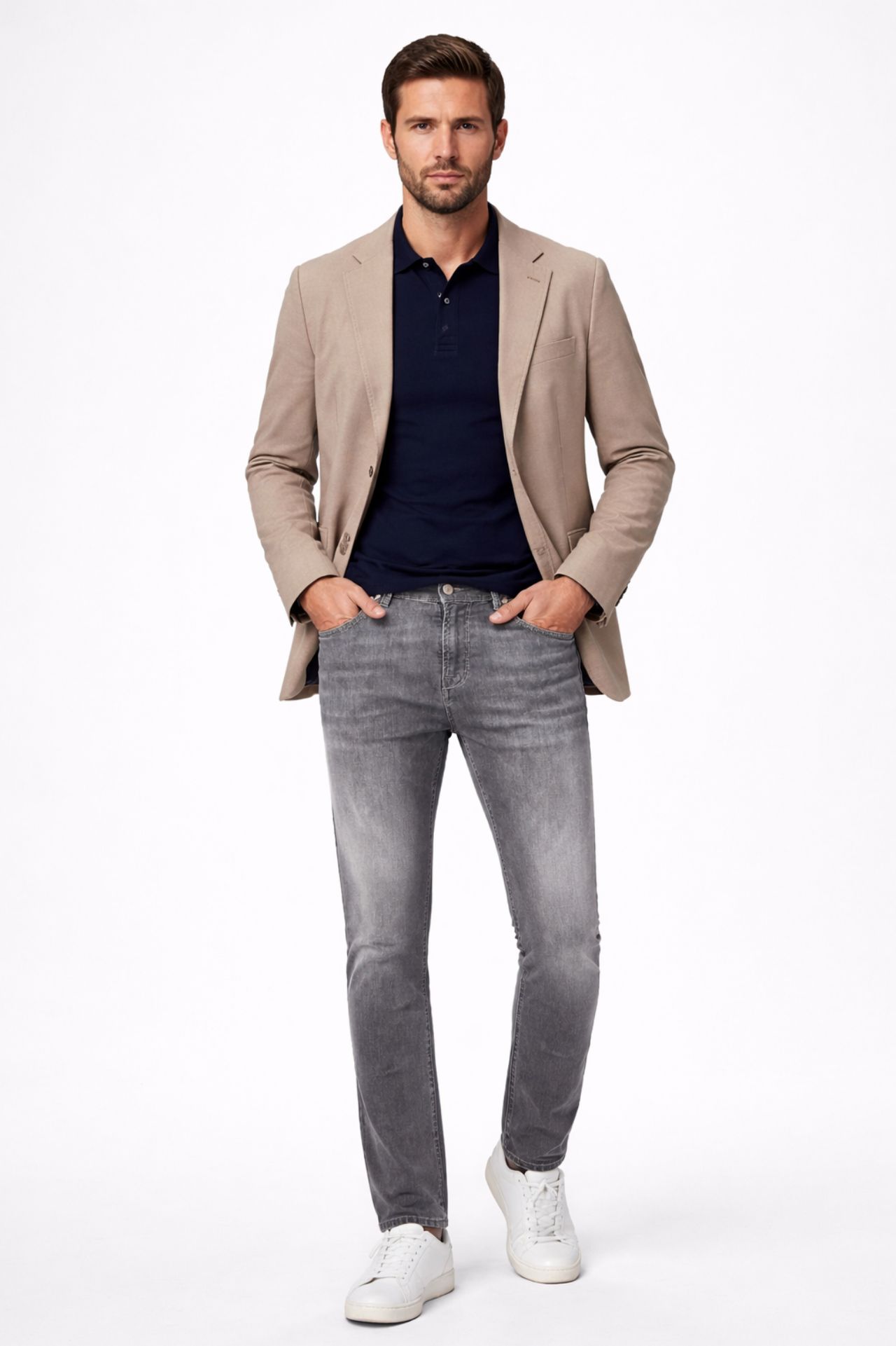 Szare jeansy męskie to nowoczesna baza garderoby, która łączy ponadczasowy styl z codziennym komfortem noszenia. Dopracowany fason i subtelnie sprany odcień szarości nadają im uniwersalny charakter, dzięki czemu świetnie sprawdzą się w wielu stylizacjach. To wszechstronne jeansy premium dla mężczyzn, którzy cenią jakość, wygodę i nowoczesny wygląd.