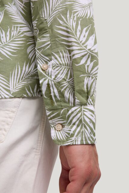 Zielona Koszula z Lnem Roślinny Print Pierre Cardin